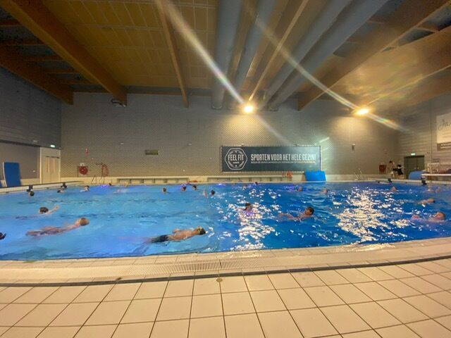 Op vrijdag hebben de komende drie weken groep 8 en 7 natte gymles. Weer eens iets anders dan in de gymzaal. Met de bus naar het zwembad en daar gymmen!